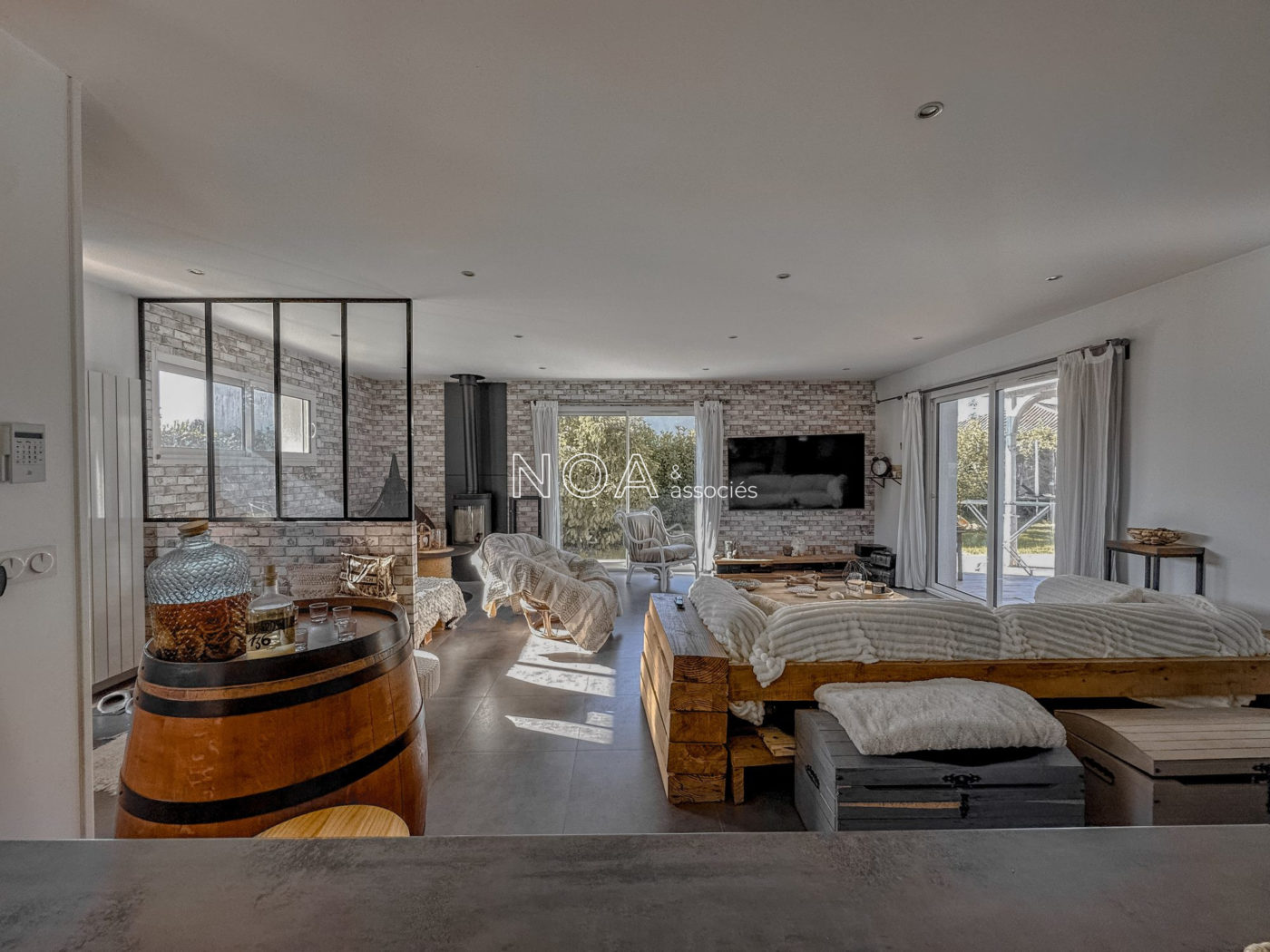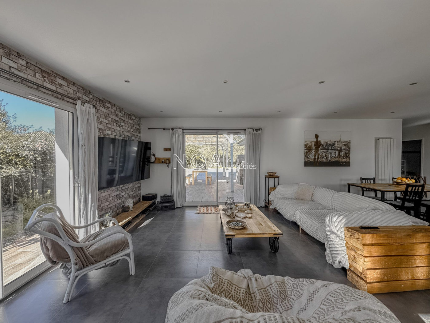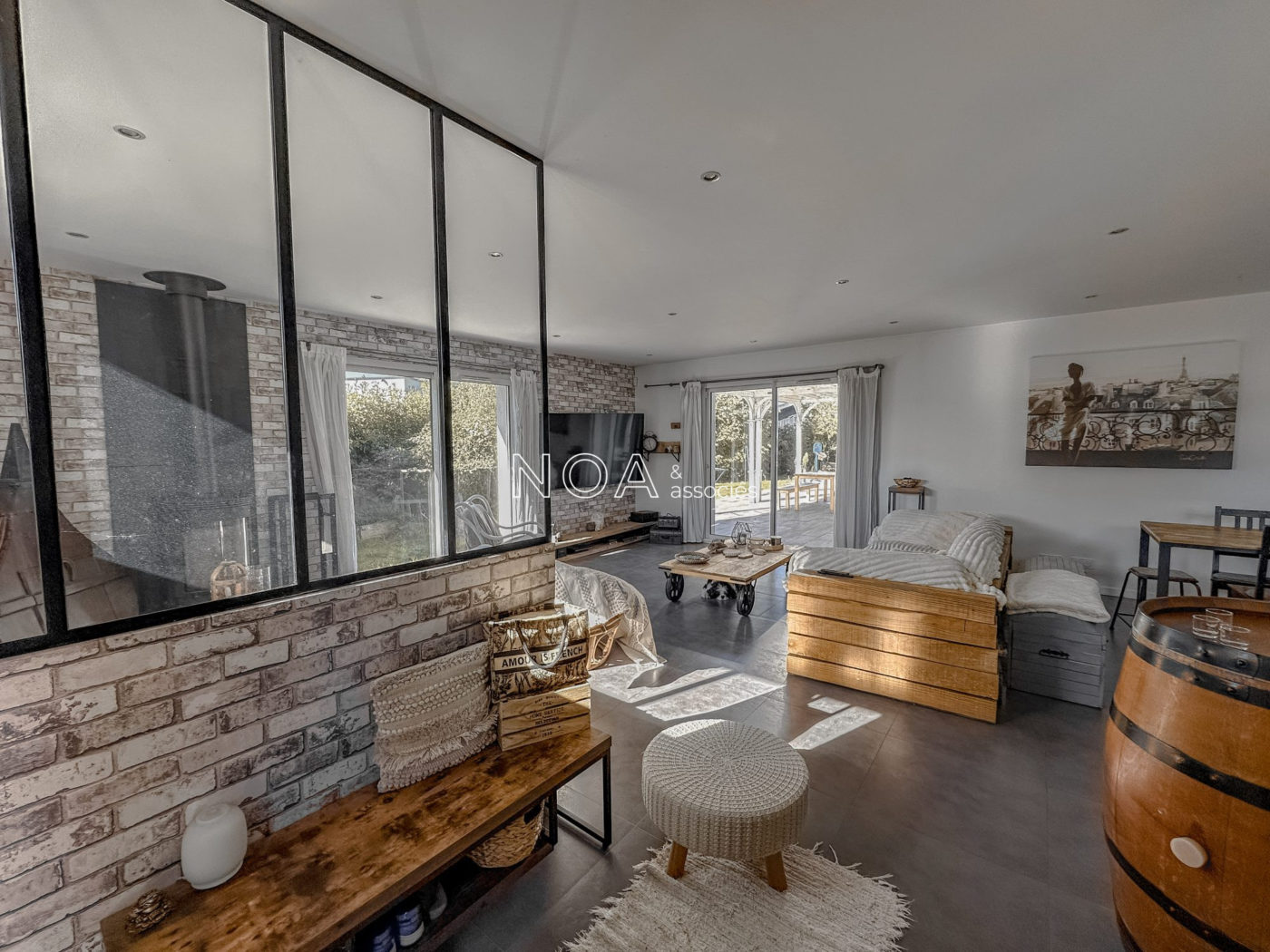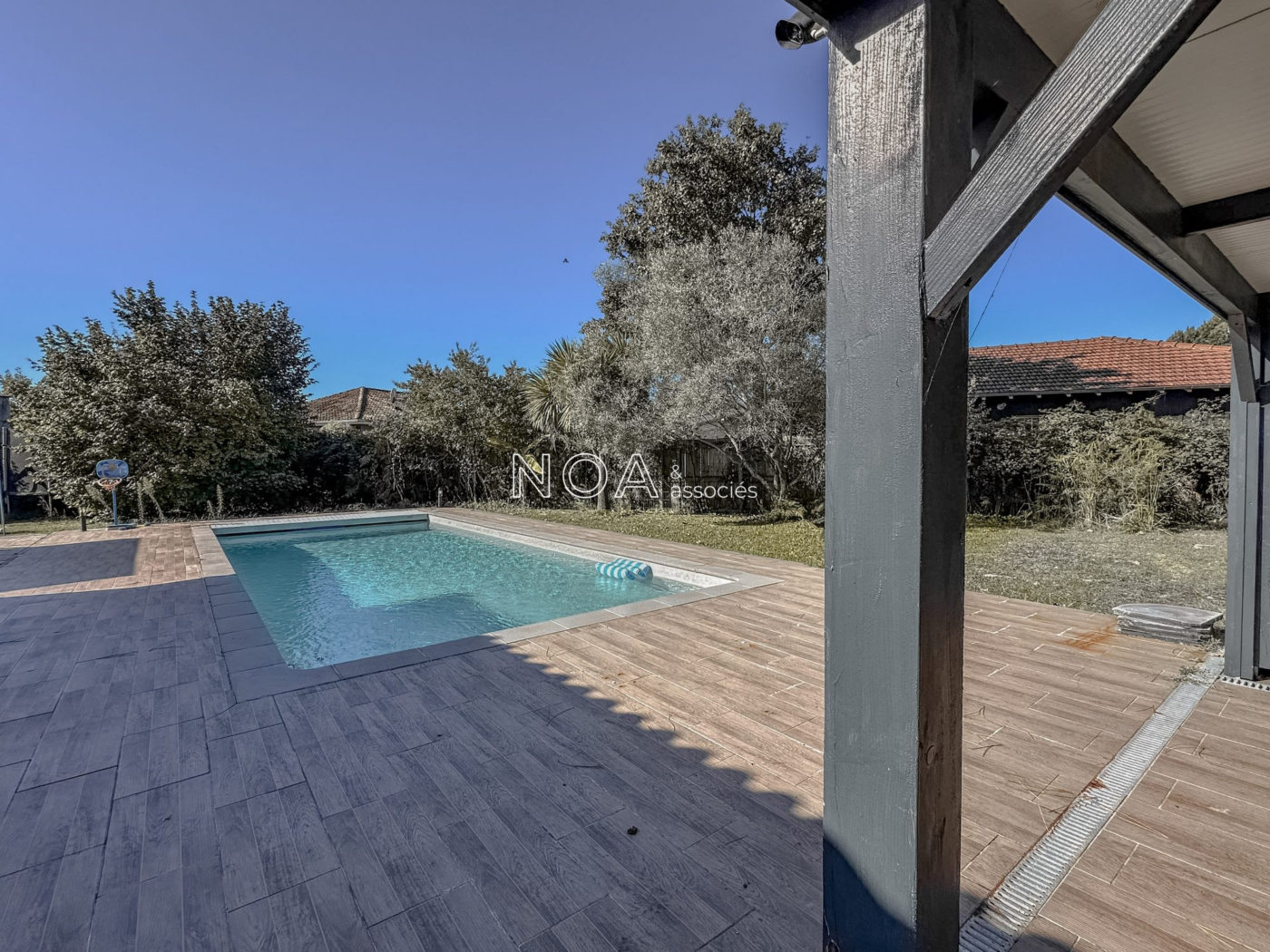 ARÈS - Venez découvrir cette vaste villa contemporaine située dans un quartier récent. Elle se compose d'une entrée avec placard, d'un salon séjour lumineux avec poêle à bois, une cuisine ouverte aménagée et équipée, un cellier-buanderie, 4 chambres dont 3 avec dressing donnant sur la piscine, une salle de bain avec douche et baignoire, et un WC indépendant. La maison est chaleureuse et offre des espaces agréables à vivre. Une dépendance s'ajoute au bien, vous proposant actuellement un aménagement de boutique avec comptoir et cabine d'essayage. Lieu idéal pour une profession libéral ou une activité annexe. À l'extérieur, vous profiterez d'un jardin de plus de 1500m2 sans aucun vis-à-vis avec vue sur la forêt, une piscine chauffée avec son pool house et une terrasse avec pergola pour de bons moments conviviaux en journée ou en soirée. L'étendue du jardin vous permettra de profiter de diverses coins de détente intimistes. Deux cabanons, un poulailler et une allée goudronnée viennent compléter les atouts certains de ce bien dont les qualités sont à découvrir.