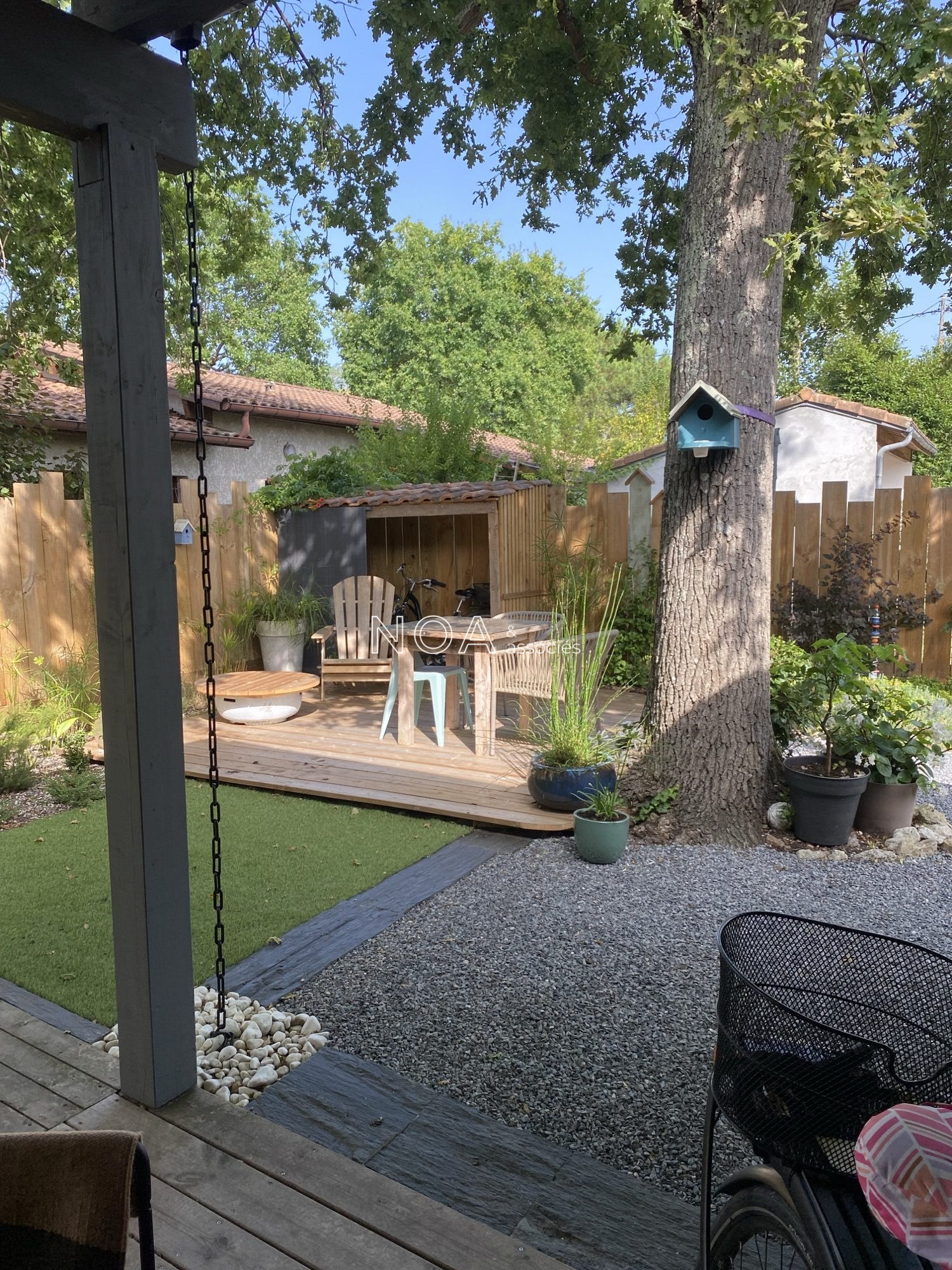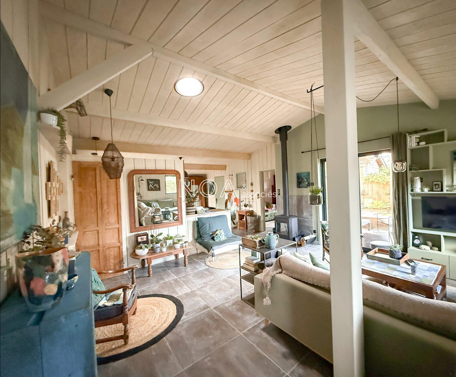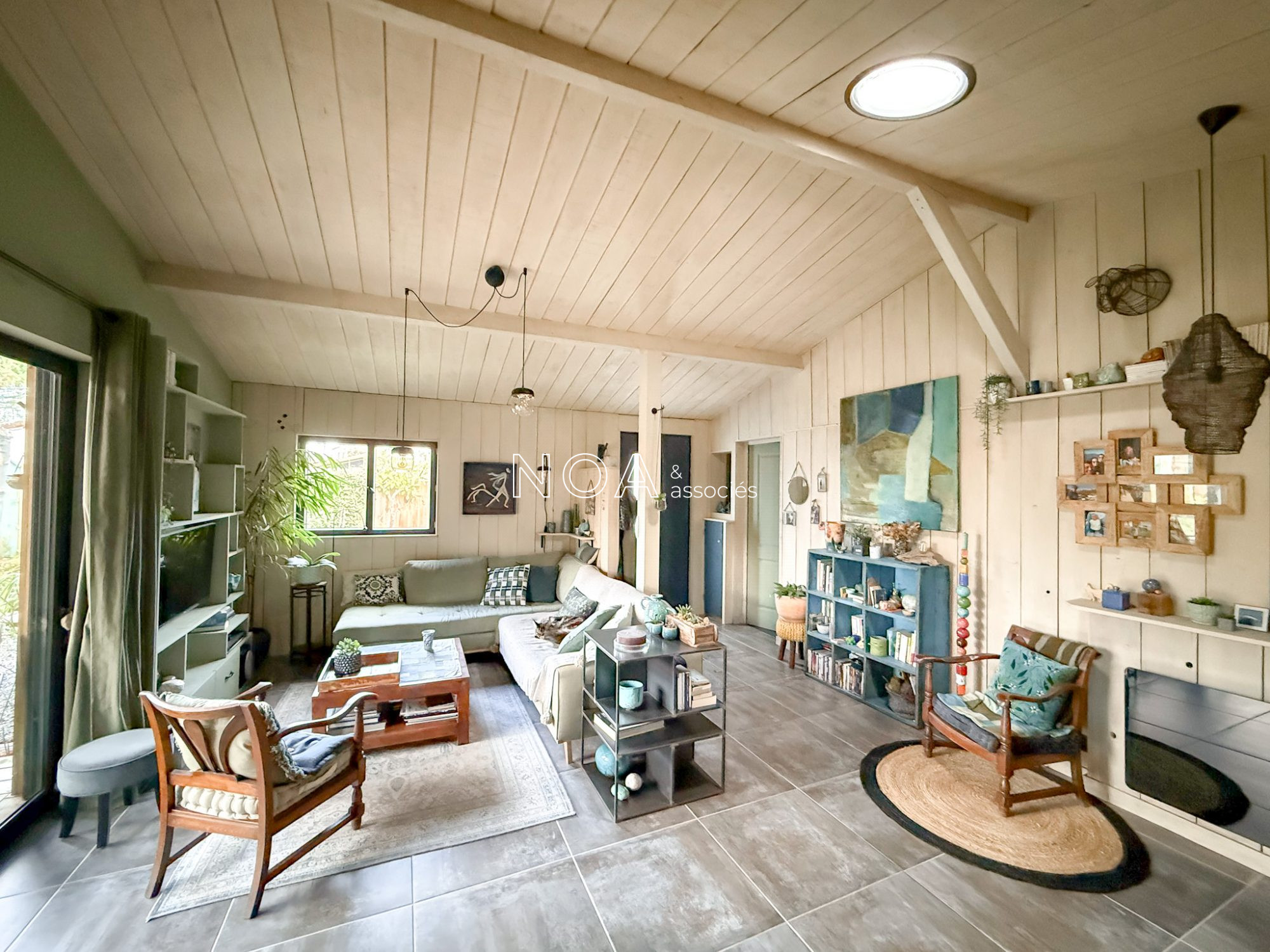 ARÈS - L'agence NOA & associés vous présente en exclusivité cette maison plein de charme située dans un environnement calme et arboré. Le bien est composé d'un salon séjour avec poêle à bois, une cuisine ouverte, un cellier, 2 chambre, une salle d'eau et des WC indépendants. Le tout a été entièrement rénové et agrandi en 2021. Vous en apprécierez le goût exploité dans les matières et couleurs, les espaces optimisés et l'harmonie de l'ensemble. Un véritable coup de coeur à 10 minutes à pied du centre village et des commerces. L'extérieur propose une terrasse bois couverte, une seconde terrasse avec exposition différente, 2 abris jardin, le tout sur un terrain intimiste de 254 m2.