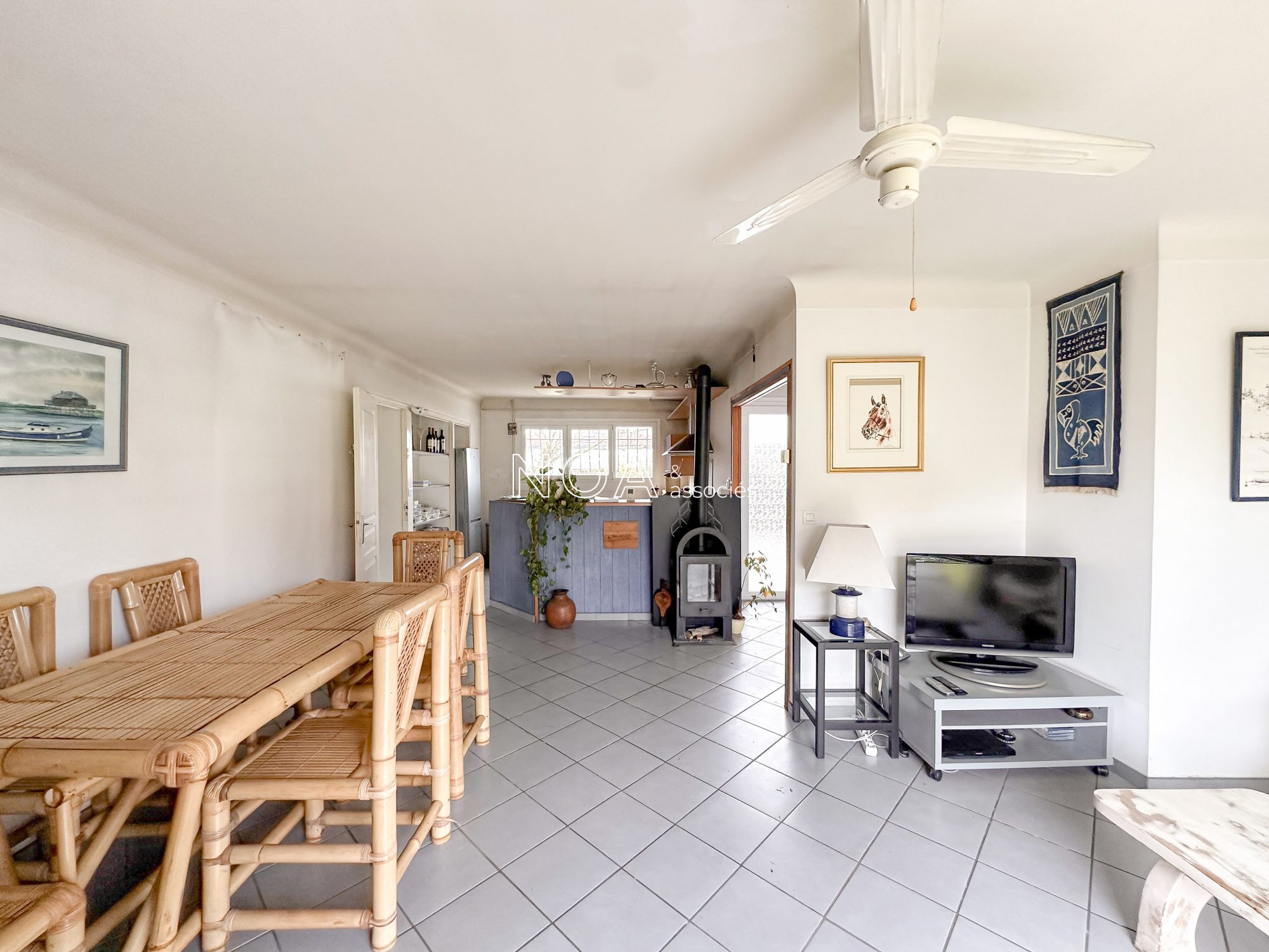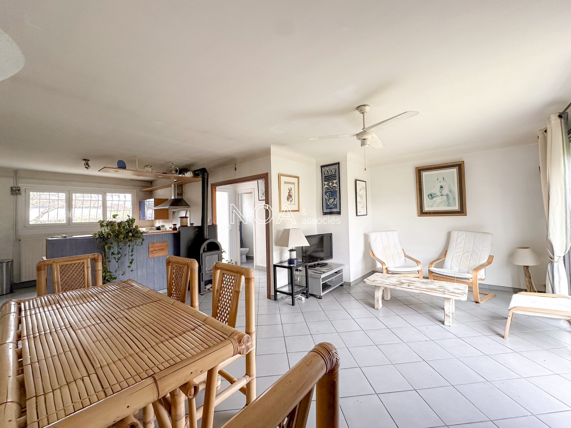 ANDERNOS LES BAINS - Proche centre ville et dans un quartier prisé - Charmante maison de 66 m2 à rénover selon vos goûts. La maison vous propose actuellement une entrée, un salon séjour avec cuisine ouverte et poêle à bois, 2 chambres, une salle d'eau, et un WC indépendant. S'ajoute à cela un garage attenant, un abri bois ainsi qu'un appentis, le tout sur un beau terrain de 655m2 offrant de belles possibilités de composition de jardin. Une maison à transformer et à faire évoluer, laissant place à de multiples configurations possibles, dans un environnement où tout se fait à pied. nHonoraires inclus de 4% TTC à la charge de l'acquéreur. Prix hors honoraires 370 000 €.