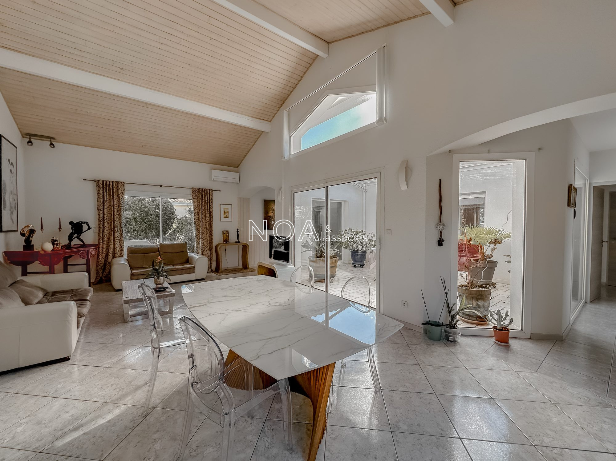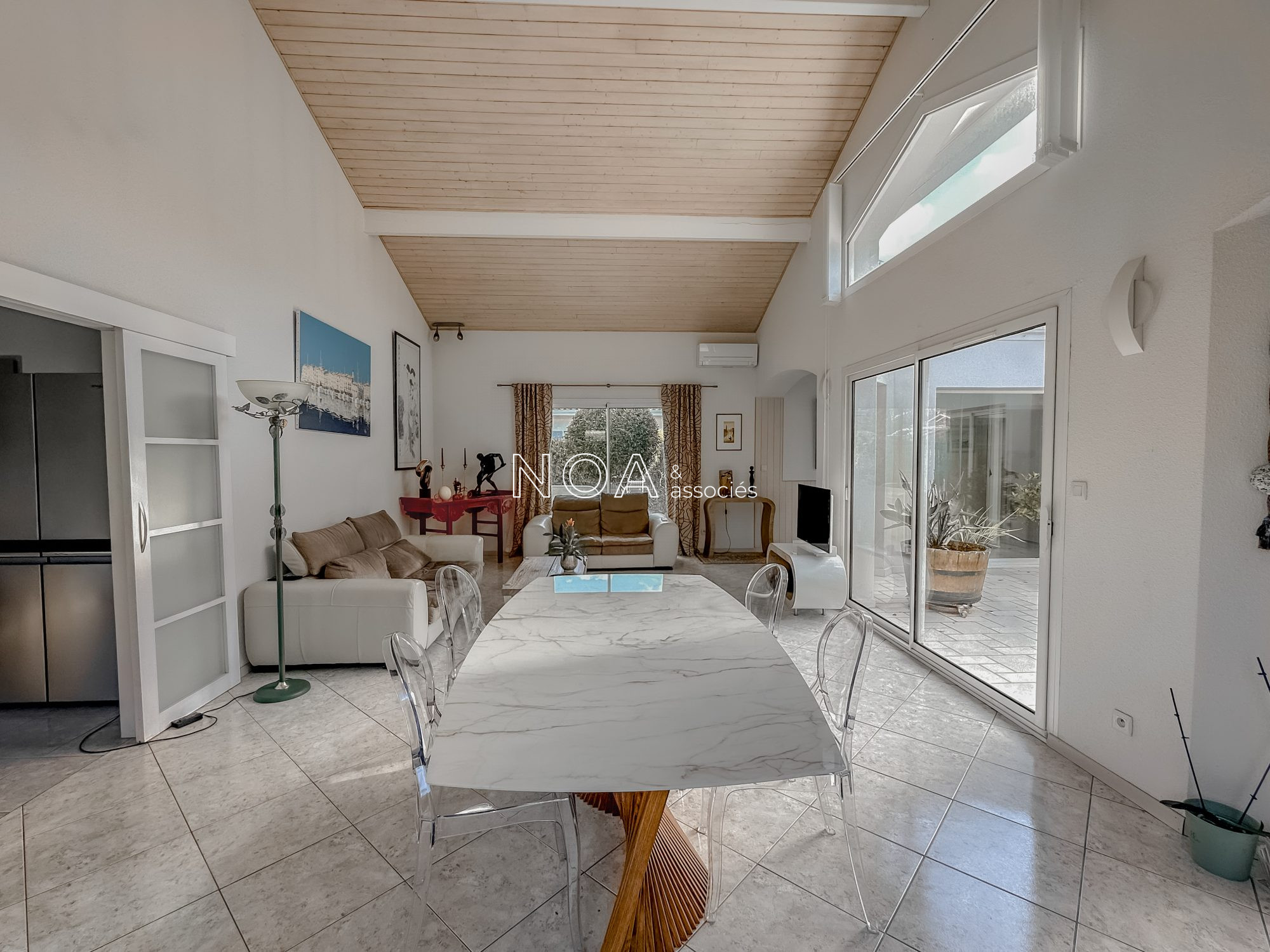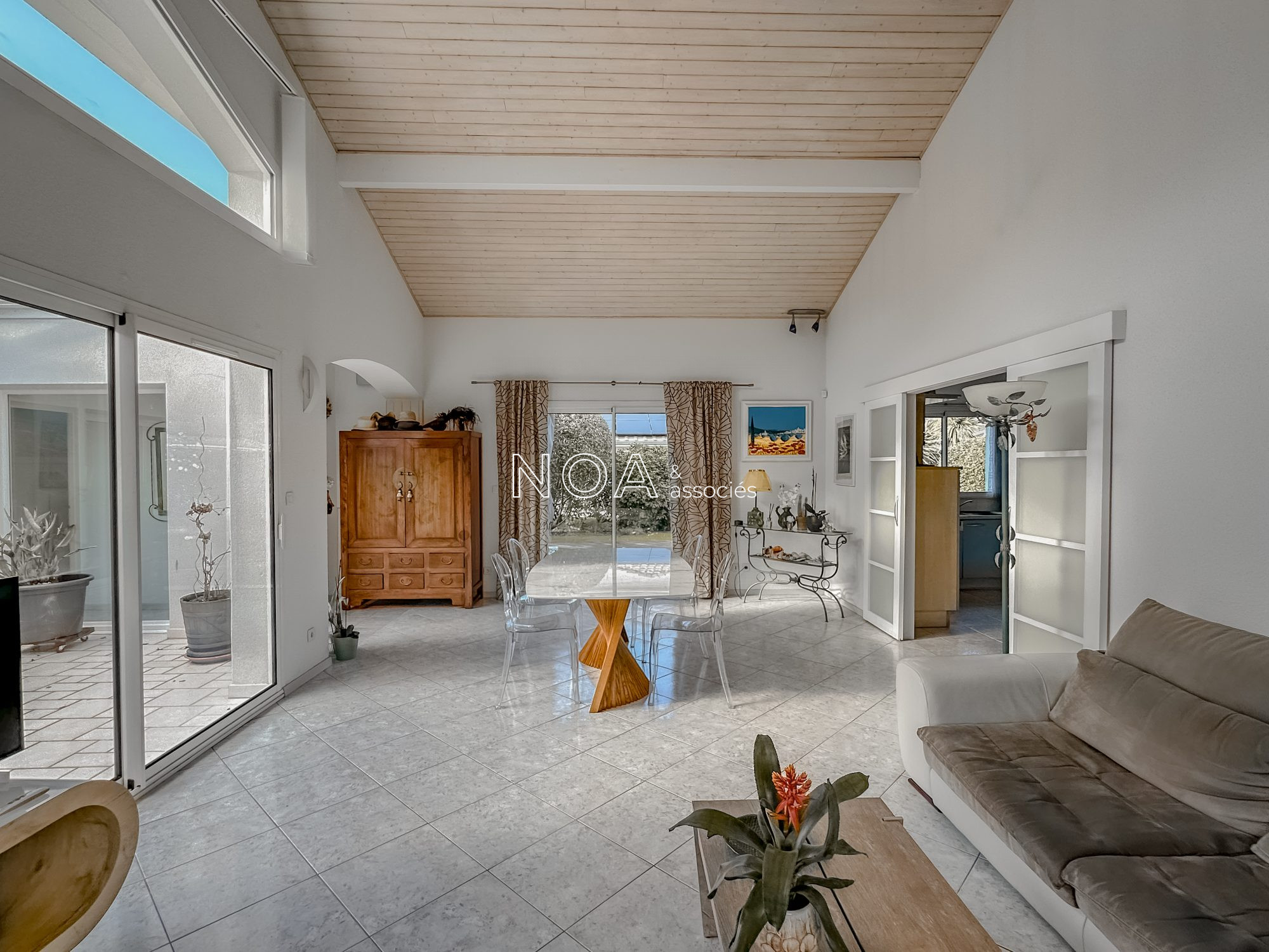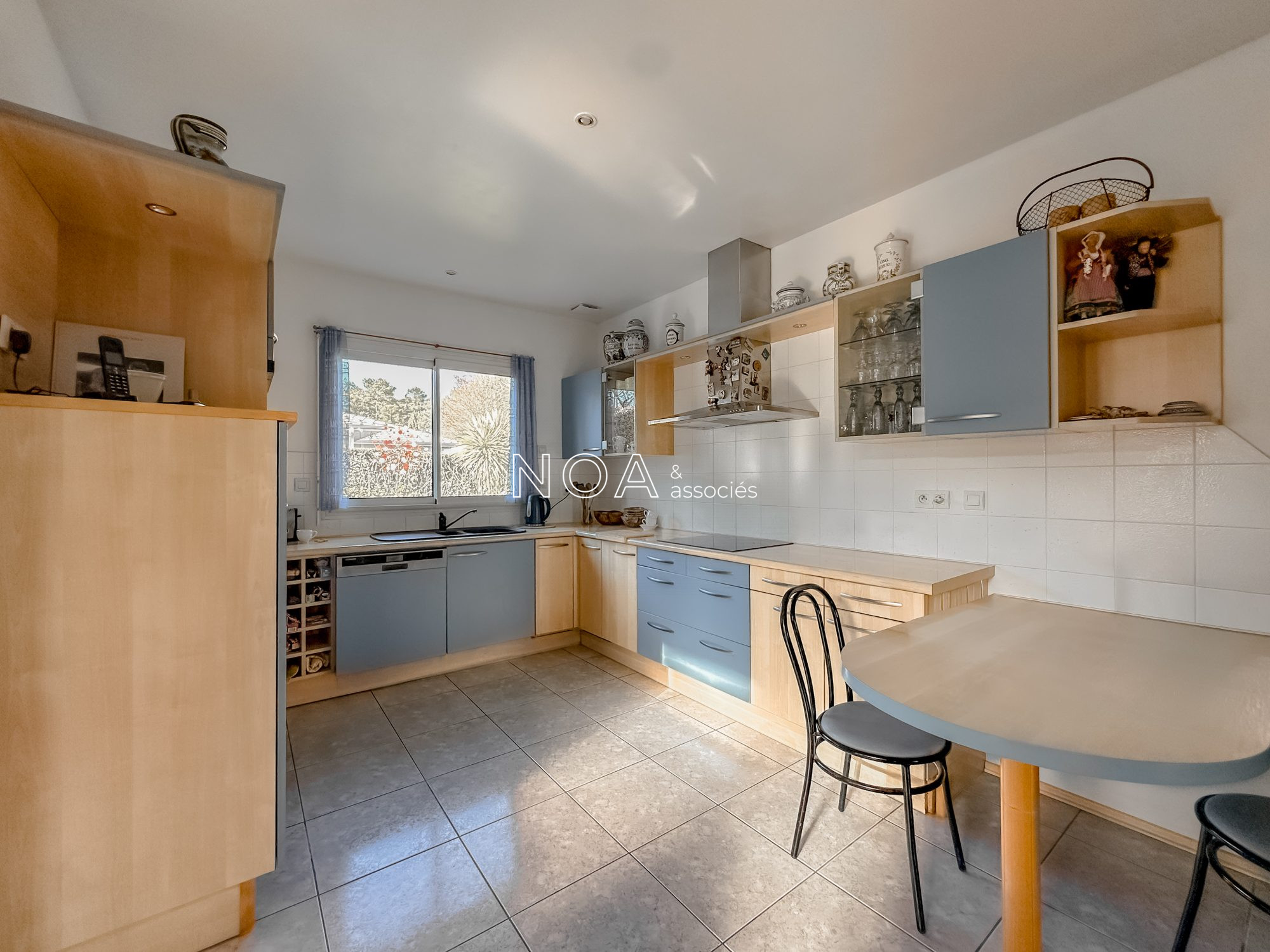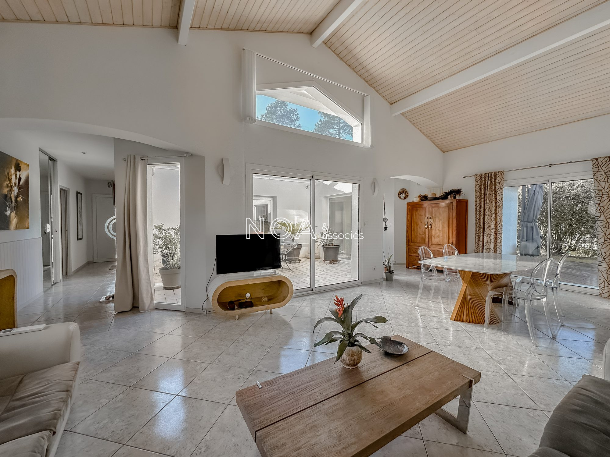 ANDERNOS LES BAINS - Dans un cadre préservé et boisé, cette villa déploie ses 193 m² habitables sur un terrain de 986 m². De plain pied, elle offre un art de vivre atypique, où confort rime avec intimité : 2 coins nuits indépendants de part et d'autre de la maison, 2 espaces de vie et des communications simples entre ces pièces. La maison propose une entrée avec placard, 2 salons séjours, une cuisine indépendante pouvant s'ouvrir sur le salon avec sa porte coulissante, 5 chambres, une salle de bain, une salle d'eau, 2 WC indépendants, un dressing et un vaste cellier / buanderie. Les espaces de vie baignés de lumière s’ouvrent sur un patio central, rajoutant un espace convivial supplémentaire durant les beaux jours. Le jardin dispose d’une jolie piscine et sa terrasse, avec une vue dégagée dans un environnement des plus paisible et arboré. S'ajoute à cela un abri de jardin ainsi qu'une seconde terrasse. Le stationnement est aisé grâce à une allée goudronnée permettant plusieurs places disponibles ainsi qu'un vaste garage de plus de 20 m2. Un lieu de vie harmonieux, fonctionnelle et étendu.