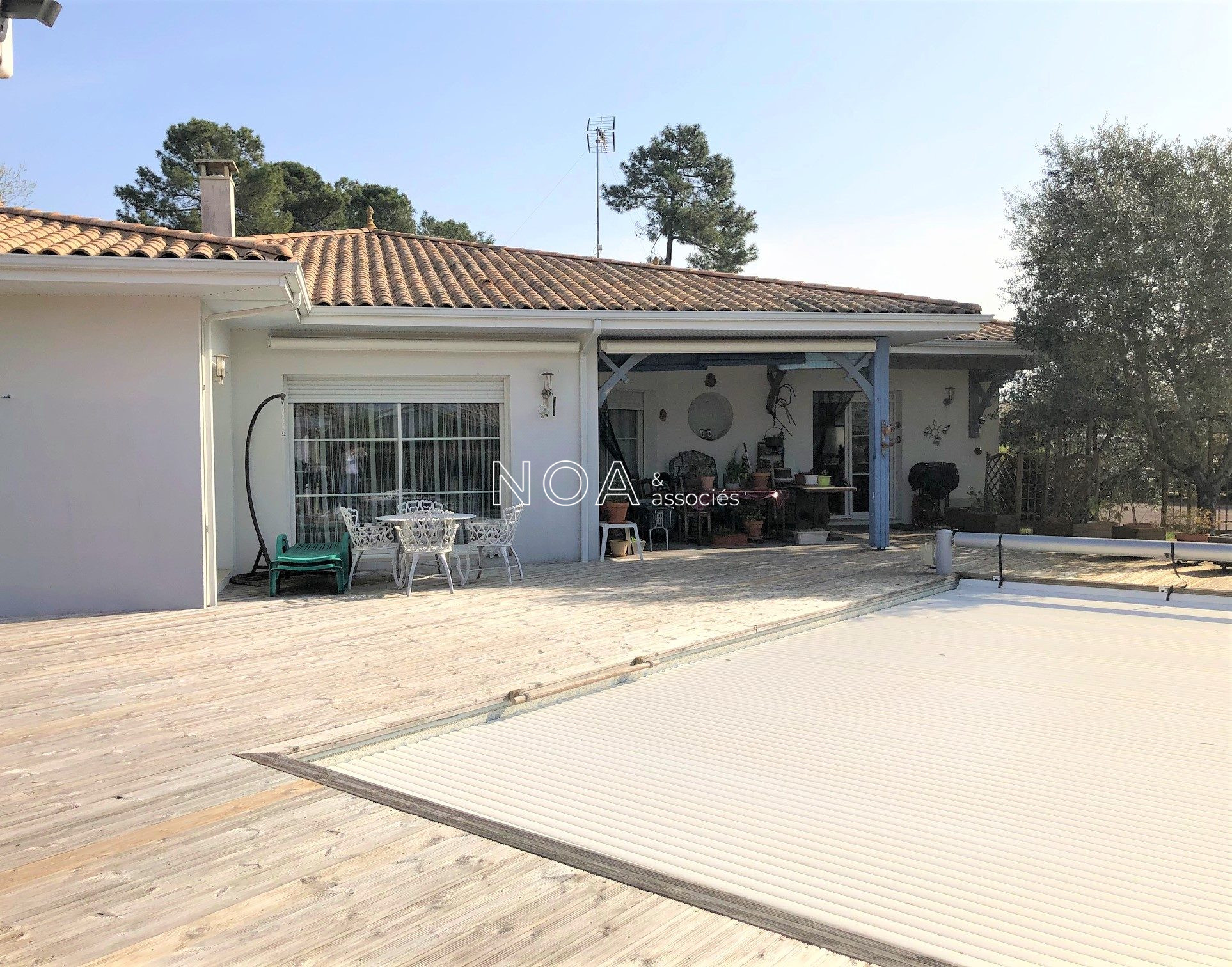 ANDERNOS-LES-BAINS - Située dans un quartier résidentiel recherché, cette maison contemporaine de plain-pied propose de vastes volumes et belles prestations, à l'abri des regards : un salon séjour spacieux et lumineux, une cuisine, 4 chambres, un bureau, 2 salles de bain, 3 WC, un dressing, un cellier. Le tout est en parfaite harmonie avec le terrain arboré et paysagé de 895 m2, la piscine chauffée et les terrasses bois. Un atelier et pool house, un abri jardin et un garage complètent les atouts certains de ce bien. DPE en cours. nVotre conseiller NOA & ASSOCIÉS : Sophie PIQUETnAgent commercial (Entreprise individuelle) RSAC 850496258
