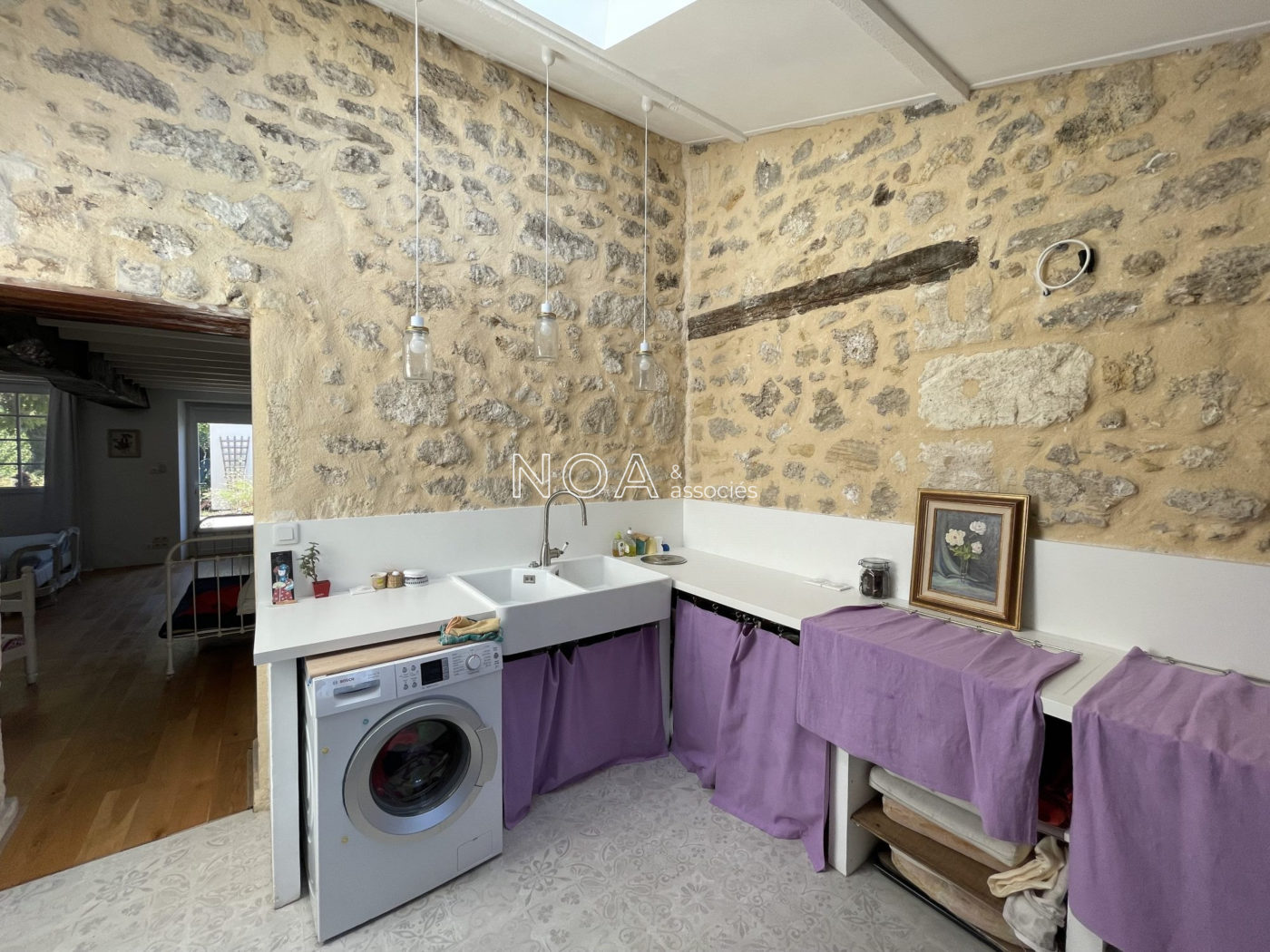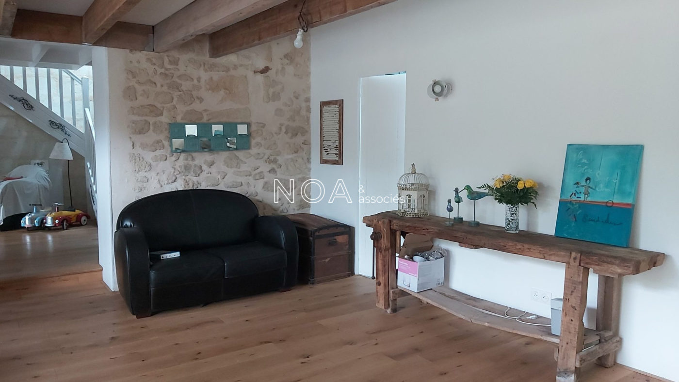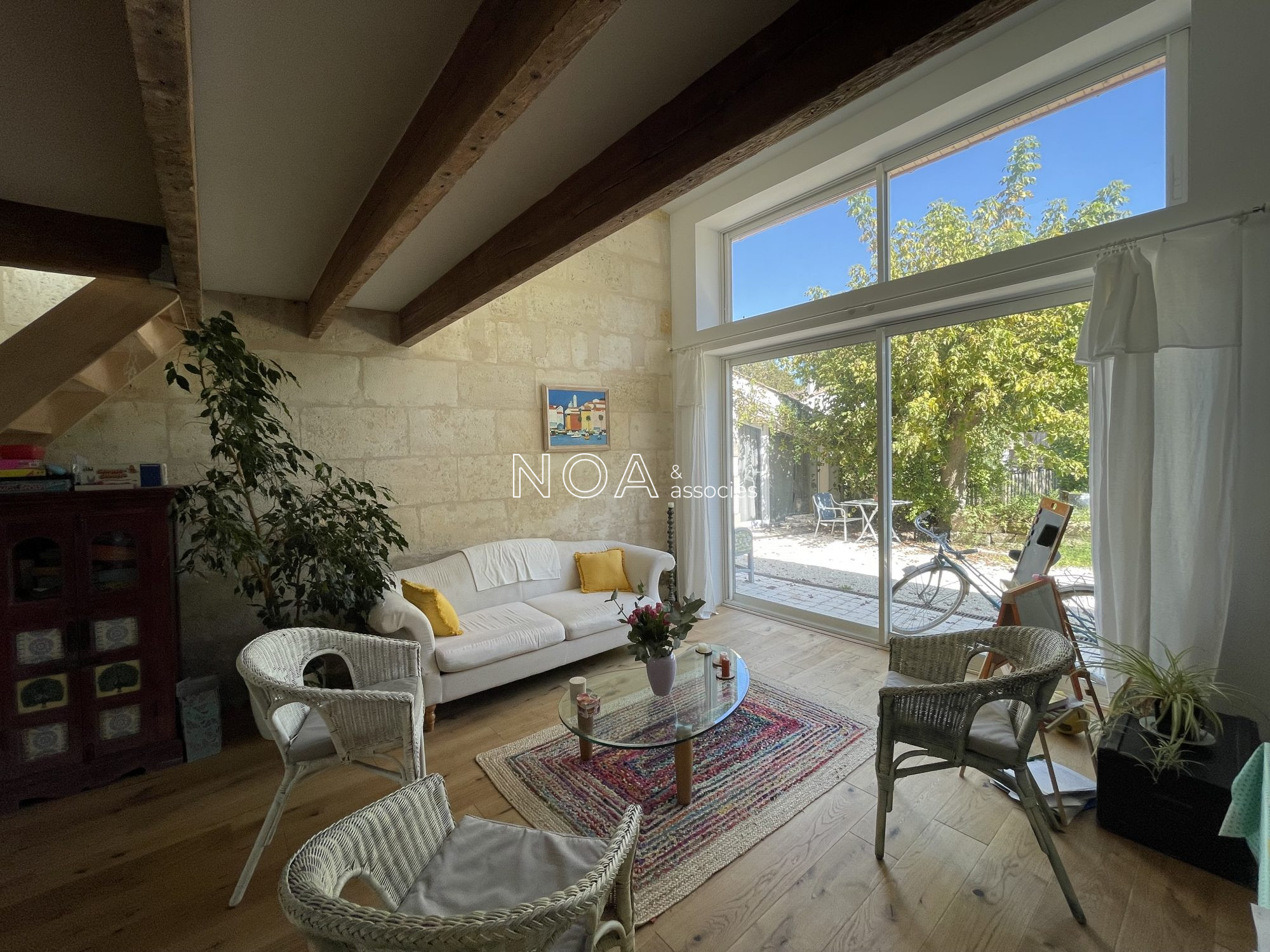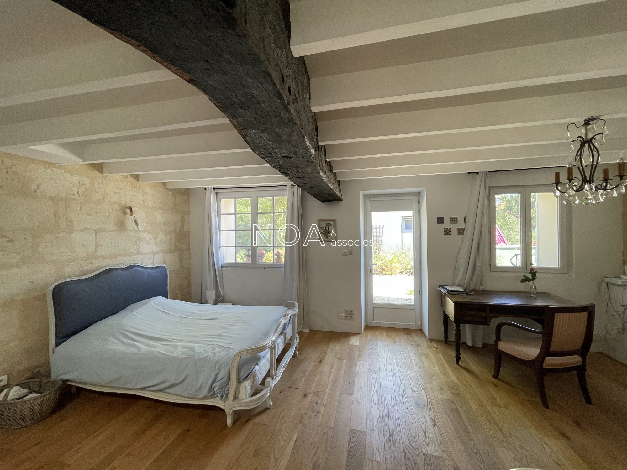 AMBARES et LAGRAVE – Très bel ensemble immobilier, rare sur le secteur. Dans un quartier calme et résidentiel, nous vous proposons cette magnifique bâtisse en pierre de taille, ancien corps de ferme rénové avec goût. Elle est composée d’un vaste salon, une cuisine équipée semi-ouverte, 1 salle de bains, 1 salle d’eau, 3 WC et 5 espaces nuits, dont une suite parentale en rez-de-chaussée. Bénéficiant de nombreux raffinements agréables et fonctionnels, tels que 2 poêles à granules, plusieurs velux et puits de jour venant donner de la clarté à de sympathiques espaces cocooning . Attenant à la maison, vous trouverez un premier studio disposant d’une pièce à vivre et d’une salle d’eau. A l’entrée du terrain, un autre studio indépendant vous permet de disposer d’un excellent rapport locatif (supérieur à 1000€/mois). Un terrain paysager et arboré d’environ 1070 m2, sans vis-à-vis, complète cet ensemble.
